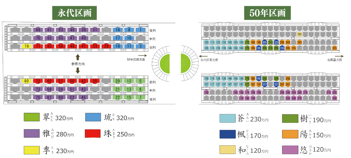 「50年区画」は最大5名まで、「永代区画」は最大12名までご利用いただけます。